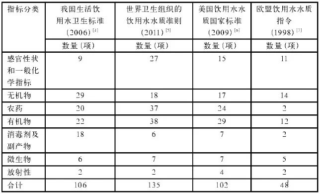 中國對飲用水的安全非常重視,不僅嚴格管控自來水廠的處理程序和檢查測試,還根據國情對飲用水水質制定了十分詳細的強制性文件及標準。據浙江大學陳新波、李聰撰寫的《國內外飲用水標準中部分指標的比較》的論文內容顯示,中國在2006年制定的飲用水新標準指標在總的數量上明顯高于美國、歐盟,僅次于世界衛生組織(WHO)。